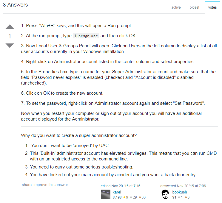 Make a user account on Windows 10 a full admin on November 10, 2017November 10, 2017 I found this online. Not sure how it works yet, have not tried it. Posted inManuals and Documents
