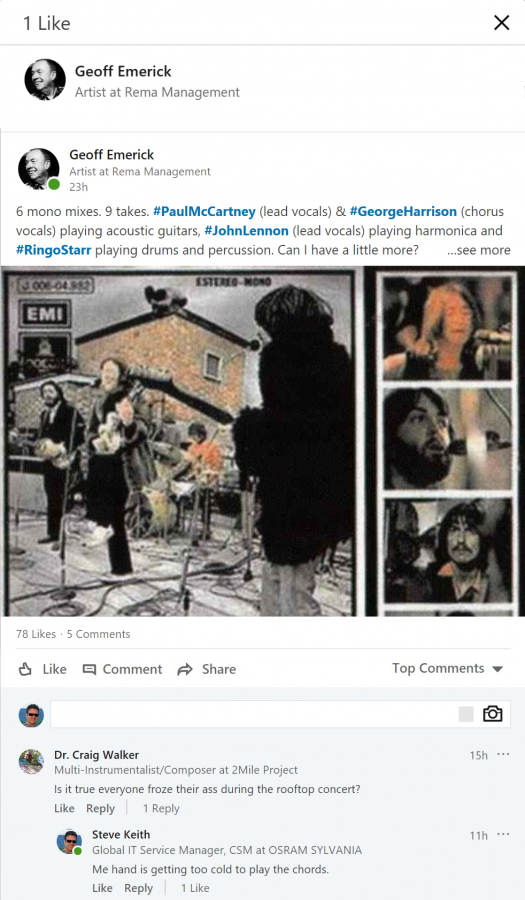 I recently connected with Geoff on Linked-in believe it or not. He posts cool stories about his time with the Beatles.